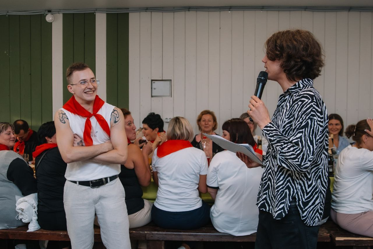 Корпоратив Суши-Рыба в стилистике 90ых